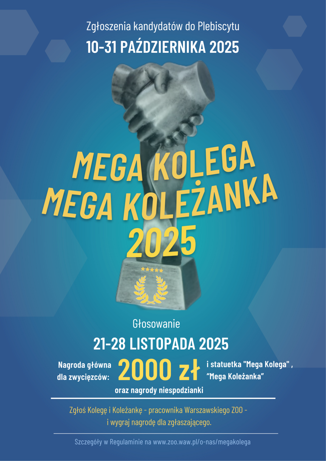 Rusza kolejna edycja Plebiscytu „Mega Kolega – Mega Koleżanka”, w którym wspólnie wybierzemy osoby wyróżniające się wyjątkową koleżeńskością, życzliwością i zaangażowaniem w życie naszego ZOO.